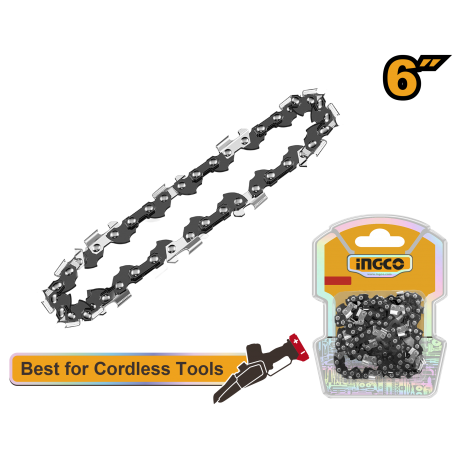 Catena di ricambio singola originale Ingco AGSC50601, 6 pollici, specifica per mini elettroseghe a batteria Ingco (CGSLI2068/CGSLI20682). Passo 1/4", 38 Maglie. Disponibile su Berardelli Store.