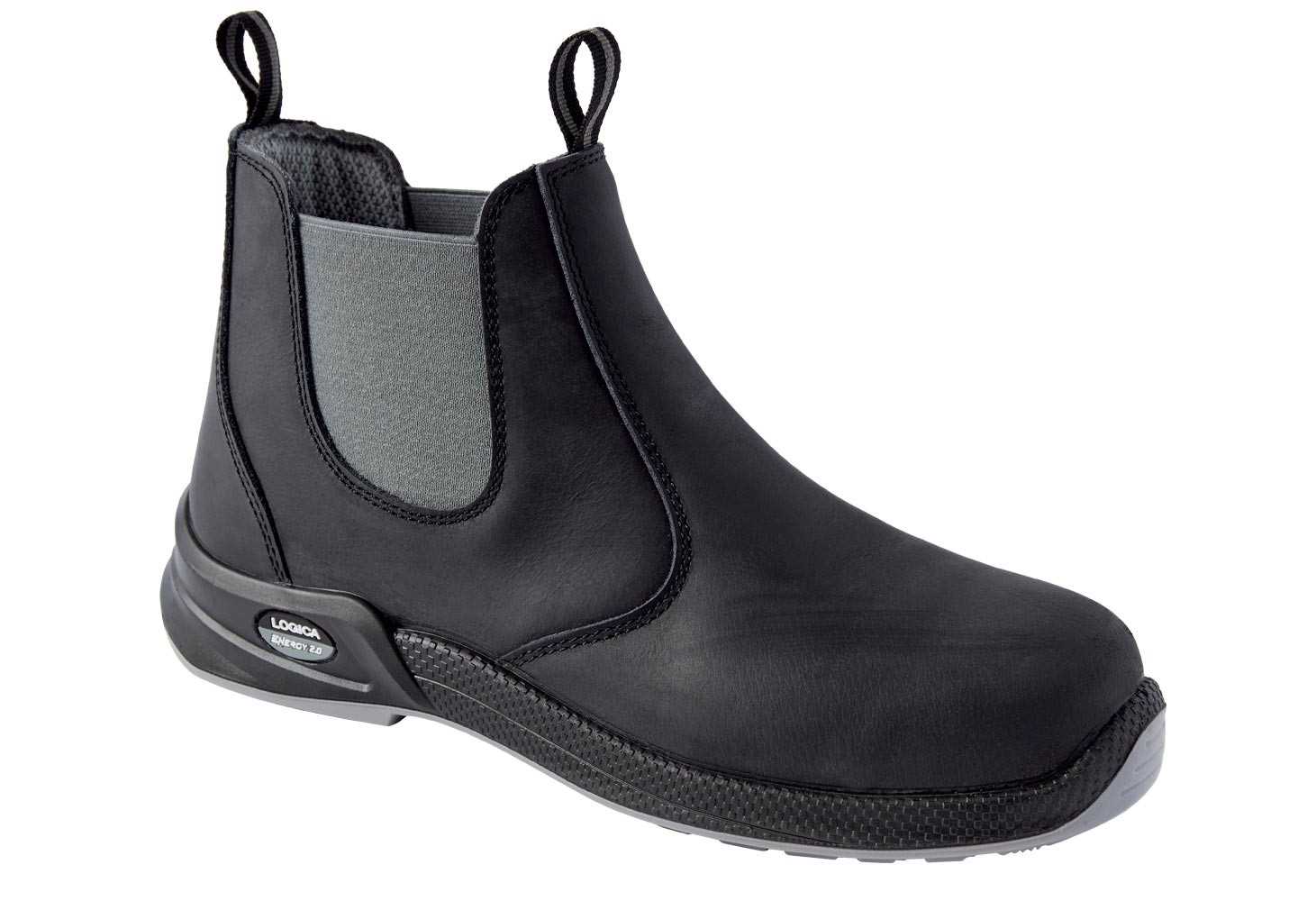 Stivaletto antinfortunistico in pelle nera, certificato S3S FO SR ESD, con puntale in composito, lamina antiperforazione non metallica e suola ad alta resistenza allo scivolamento — ideale per professionisti e ambienti impegnativi.