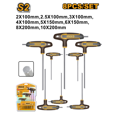 Il Set 8 Chiavi Esagonali (a Brugola) a T Ingco HHKT80818 è progettato per massimizzare la coppia applicata, riducendo al contempo lo stress sulla mano. L'impugnatura a "T" ergonomica fornisce una leva superiore, perfetta per allentare bulloni esagonali serrati o per lavori che richiedono rapidità. Realizzate in robusto Acciaio al Cromo Vanadio (CrV), queste chiavi garantiscono una lunga durata e resistenza alla deformazione sotto sforzo.