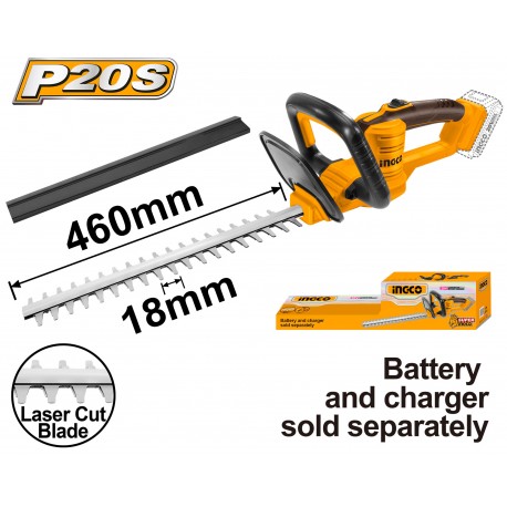 Il Tagliasiepi a Batteria Ingco HTHLI4601 (versione nuda - senza batteria né caricabatterie) è l'utensile ideale per una potatura senza sforzo e senza fili di siepi di medie dimensioni. Alimentato dalla piattaforma 20V, offre una velocità massima di 1450 rpm. La doppia lama da 460 mm (18"), realizzata in acciaio SK5, permette di tagliare rami fino a 18 mm di diametro. La barra in alluminio e l'impugnatura confortevole assicurano leggerezza e facilità d'uso.